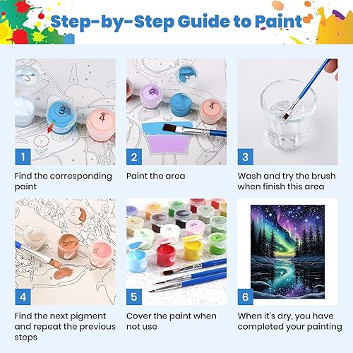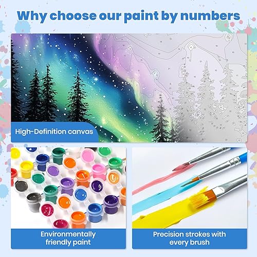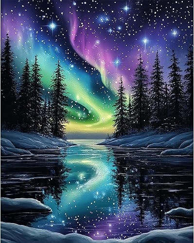 Peinture par numéros adulte Ciel d'aurores boréales, Superbes aurores, Kit de bricolage pour adultes Peinture sur toile Avec peinture et pinceau, Cadeaux et décorations de peinture 30x40 cm sans cadre