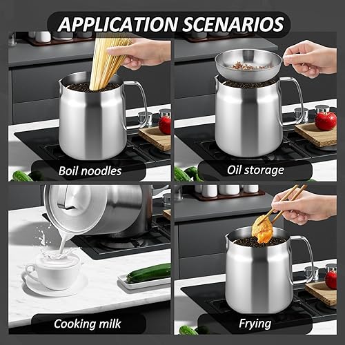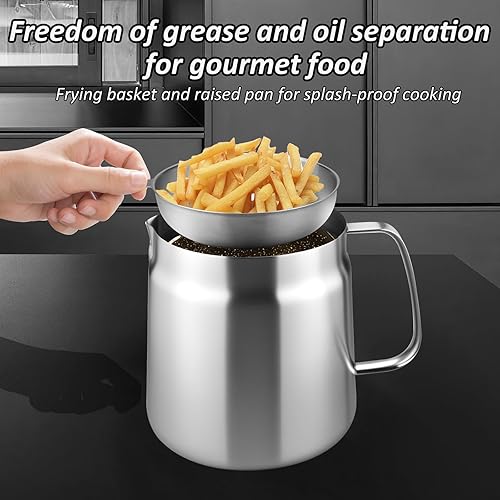 LUOJINYI Pot de Filtre à Huile en Acier Inoxydable, 2L Friteuse a Huile avec Filtre À Mailles Fines et Panier à Friture, Panier Friteuse pour Stockage de l'Huile de Friture et Graisse de Cuisson