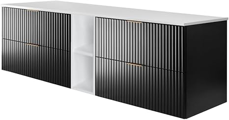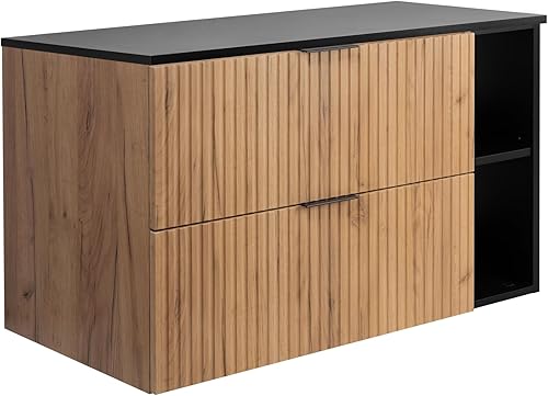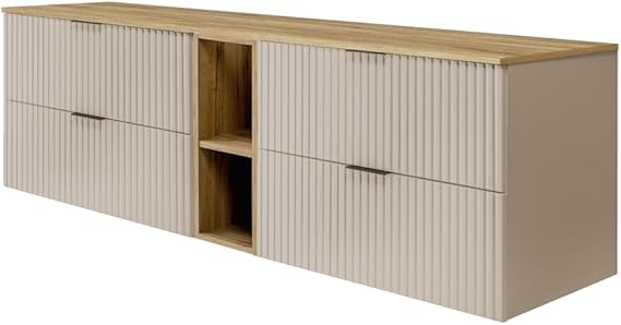 3E 3xE living.com Meuble de Salle de Bain, Cachemire/Chêne Craft + poignée Noire, 180 x 57 x 46 cm