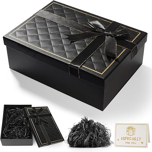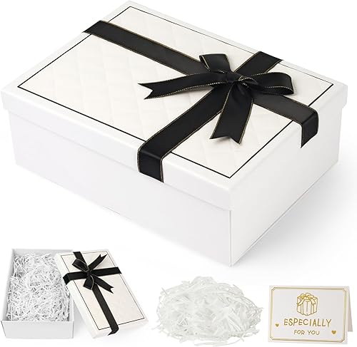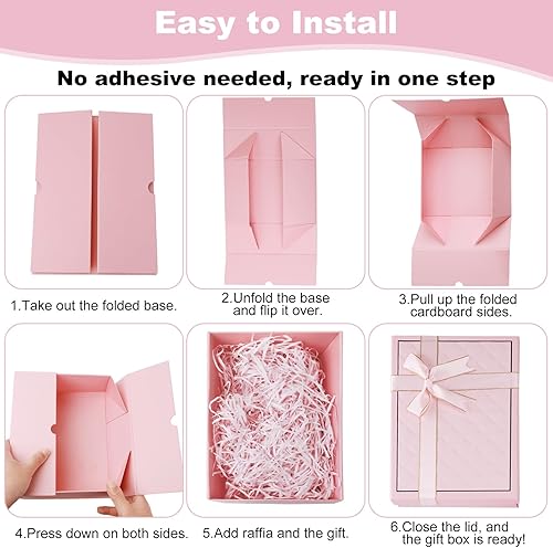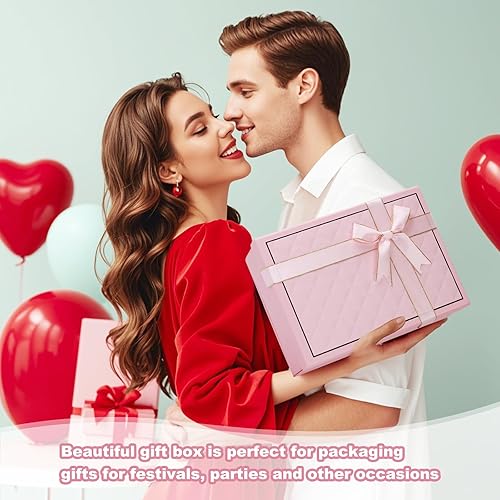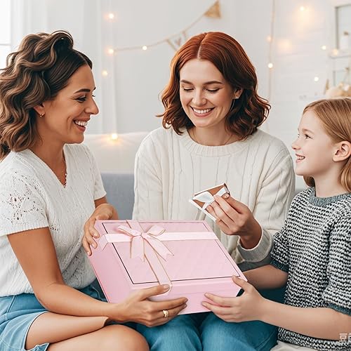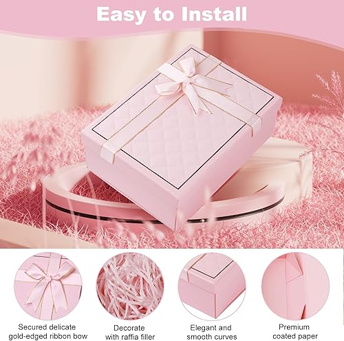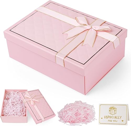 Boîte cadeau avec couvercle et ruban délicat - Profondeur : 9 cm - Grande boîte cadeau pour festival, cadeau d'anniversaire, Saint-Valentin, anniversaire, mariage (rose)