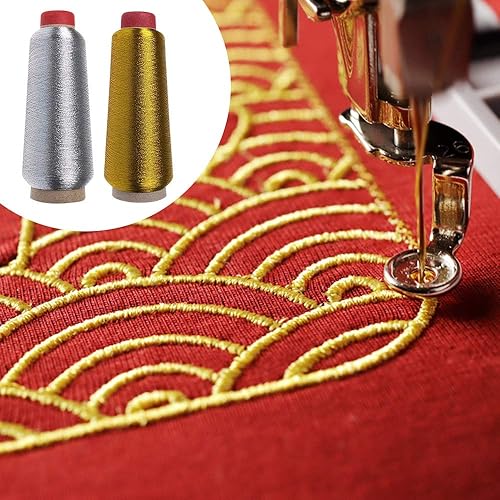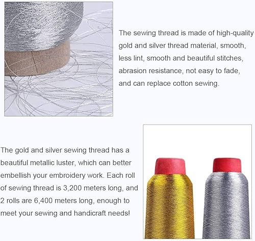 LYTIVAGEN 2 PCS Fil à Coudre en Polyester Fil Couture de Machine à Coudre Fils à Broder 3200m/Bobine Fil à Coudre Fil Broderie Machine Couture Mercerie pour Tricoter, Coudre, Crochet(Doré et Argent)