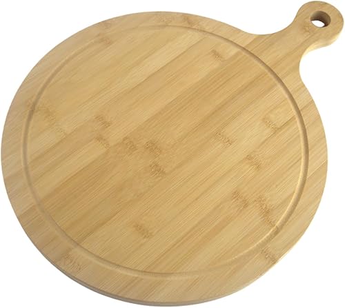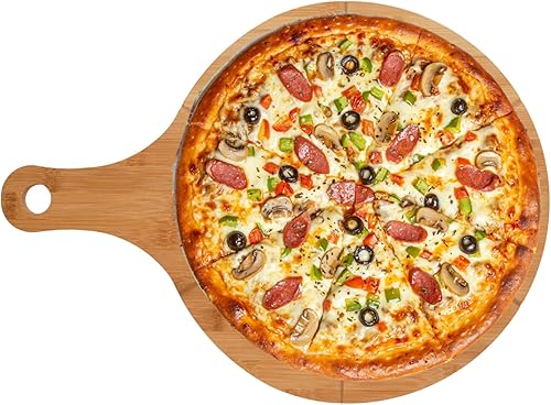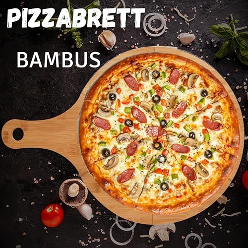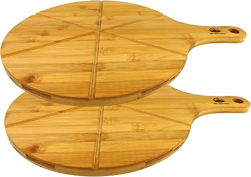 hausleben Assiette à pizza en bois de 33 cm (lot de 2, 3 ou 4) – Grande planche à pizza avec poignée, assiette à pizza, planche à pizza ronde, planche à pizza, planche à pizza