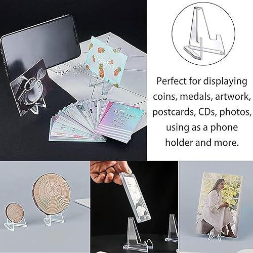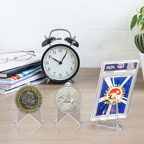 AIMUMEIF 50PCS Support de Monnaie,Mini Présentoir Chevalet Acrylique,Support Présentoir Acrylique,Support Carte Mini Chevalet pour Pokemon Medaille Badge Monnaie