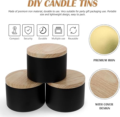NUOBESTY 3pièces Pots À Bougie Fer Avec Couvercle Récipients Vides Multi-usages Pour Décoration Maison Et Diy