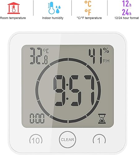 YanFeng Horloge de Salle de Bains, thermomètre numérique hygromètre LCD minuterie de Douche numérique réveil Station météo sans Fil pour Bureau à Domicile
