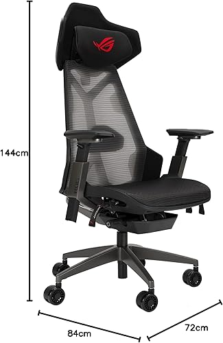 ASUS ROG Destrier Ergo – Fauteuil gaming ROG (Support Lombaire et Appui-tête, accoudoirs 360°, accoudoirs jusqu'à 14 cm, mode jeu mobile, cadre en aluminium)