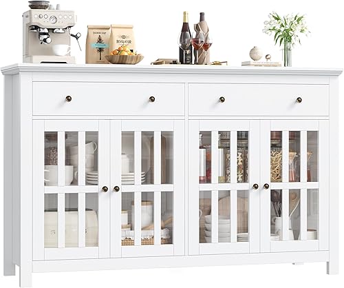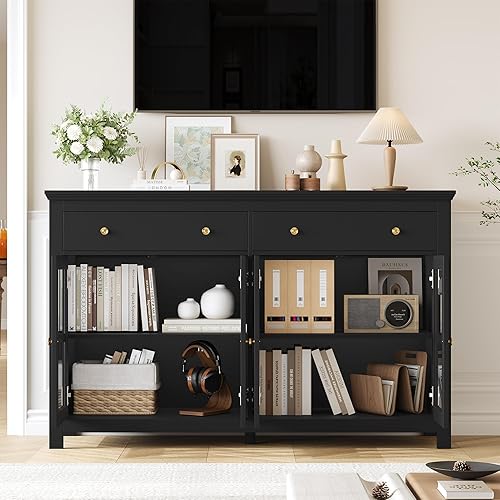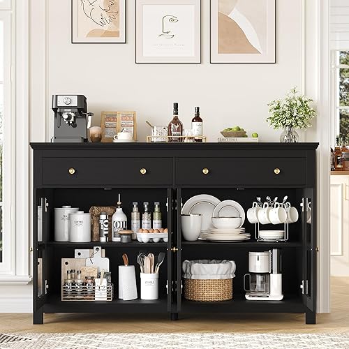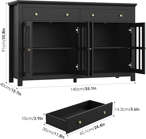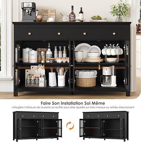 FirFurd Buffet Cuisine Meuble Cuisine Rangement avec 4 Portes 2 Tiroirs Étagères Réglables Bufffet Salon Salle à Manger 140x40x91cm Noir