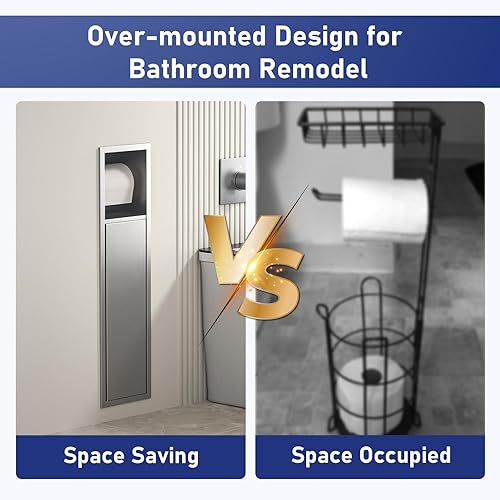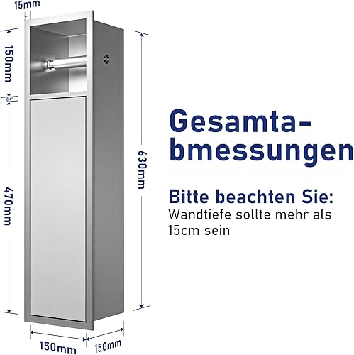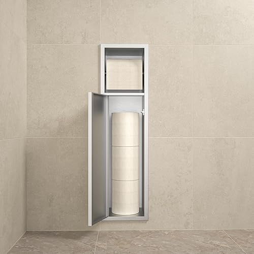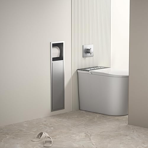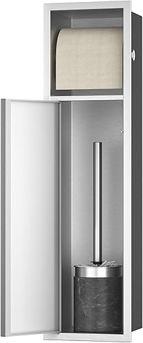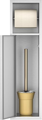 Bernkot Porte-papier toilette encastré en acier inoxydable avec porte coulissante - Armoire de salle de bain avec porte-papier toilette pour brosse WC - Argenté - 66 x 18 x 15 cm
