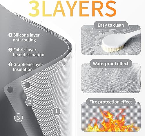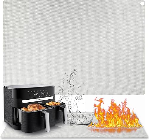 Tapis Résistant à la Chaleur pour Friteuse à Air, 40 x 60 cm Tapis en Silicone Ignifuge pour Comptoir de Cuisine, Protecteur de Comptoir, Antidérapant et Imperméable, Gris