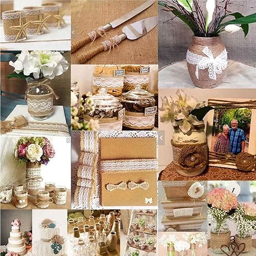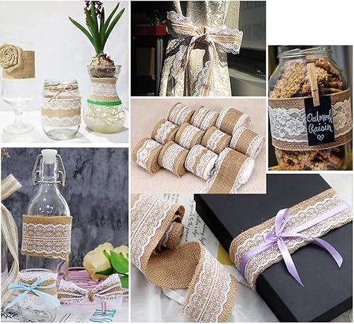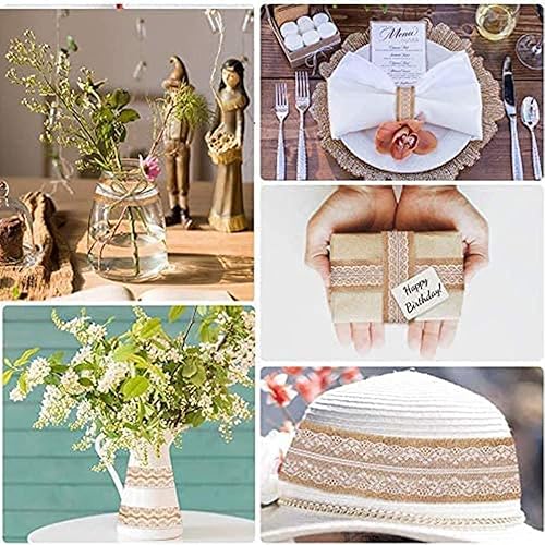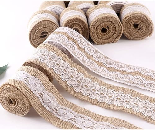 10 rouleaux rouleau de ruban de toile de jute de dentelle Blanche naturel, Fait de ruban de jute naturel et de dentelle de soie blanche.Déco Mariage et les emballages-cadeaux.