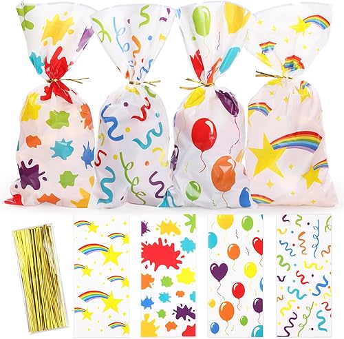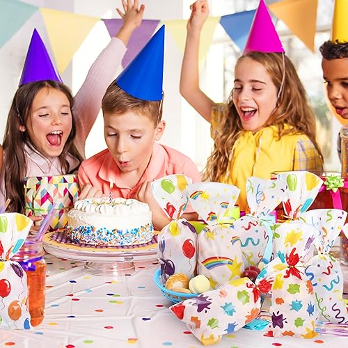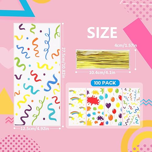 Bighan 100PCS Sacs Cadeaux Sachet Bonbons avec 100 Attaches Torsadées, Petits Sachets pour Biscuits, Chocolat, Pain en Plastique, Sacs Cadeaux D'anniversaire pour Enfants