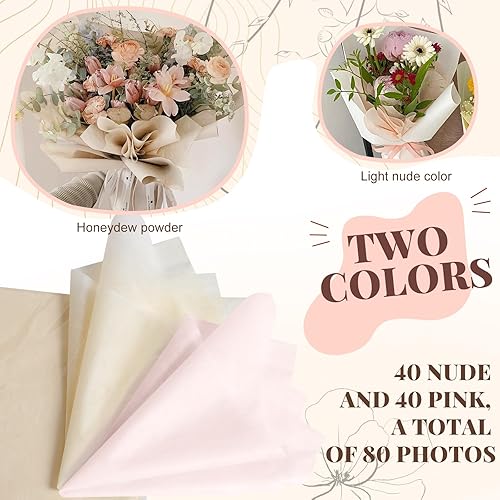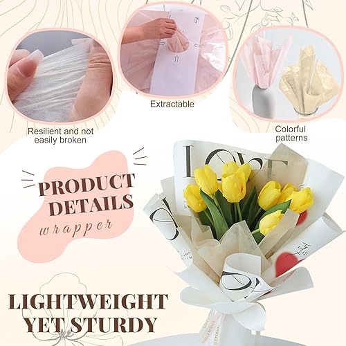 Feuilles de Papier Cadeau Rose, Papier Emballage Fleuriste Papier Bouquet de Fleur, Emballage Bouquet de Fleurs Gift Floral Papier D'emballage de Fleurs Anniversaire, Festival, Mariage
