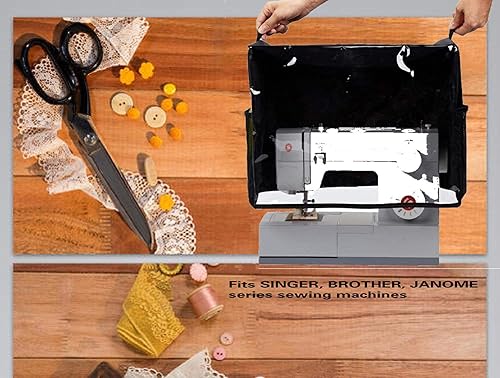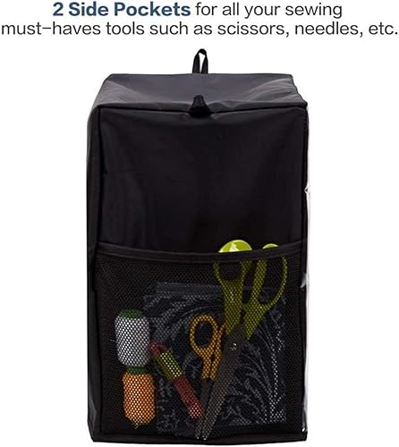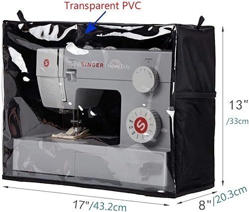 Housse De Protection pour Machines à Coudre,Couverture Transparente avec 2 Poignées Et Poches en Filet,pour Brother Singer Janome,Oxford Noir 43 * 33Cm
