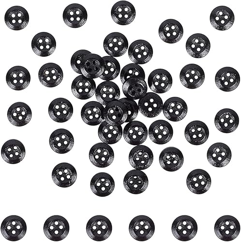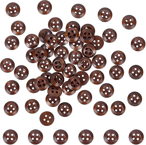 CABODYALS 100 Bouton Rond Plat en Bois Noir 4 Trous 10mm Classique Naturel Petit Solide en Vrac avec Boîte pour Couture Artisanat Vêtements Tricot Scrapbooking