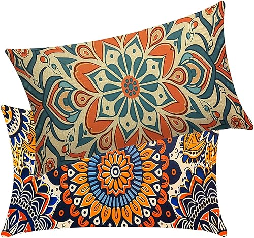 Coussin Exterieur Impermeable BohêMe Lot de 2 Housse Coussin Canape Couleur 30x50 cm Lin Couture Double Renforcée Taie Oreiller de Canapé pour Ferme Maison Decoratif Salon Jardin Cadeau Femme BY2 P-G