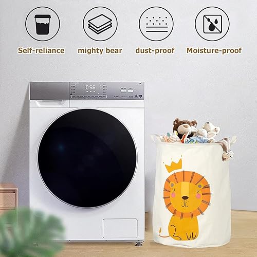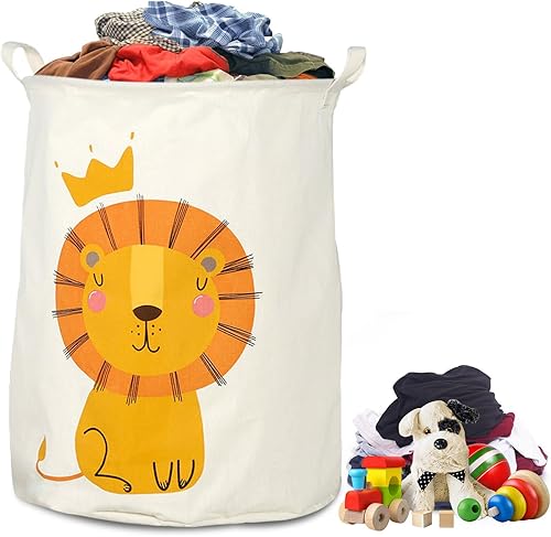 Panier à linge 60 L - Panier de rangement pliable pour chambre d'enfant - Panier à linge avec motif lion - Panier de rangement étanche pour jouets - Sac à linge pour vêtements d'enfants - 40 cm de