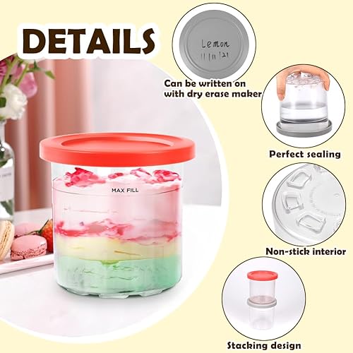 BYKITCHEN Creami NC300EU Lot de 4 récipients de rechange pour sorbetière Ninja Creami NC300EU, accessoires Creami compatibles avec Ninja Creami Ice Cream Maker NC300EU