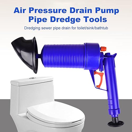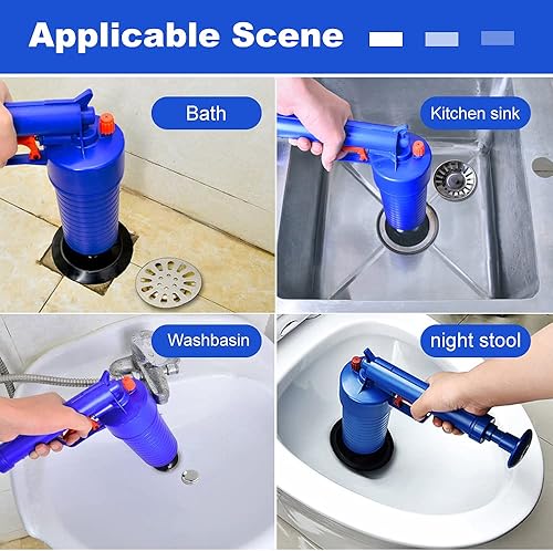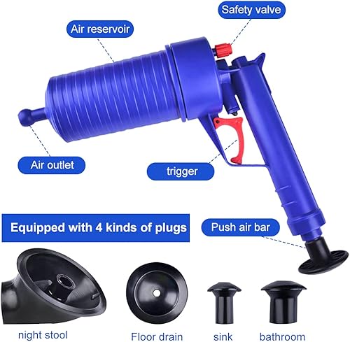 Déboucheur avec Air Comprimé avec 4 Différentes Ventouses Haute Pression Manuel Outils de Dragage pour Toilette/Lavabo/Baignoire (Bleu)