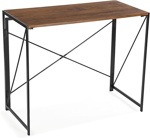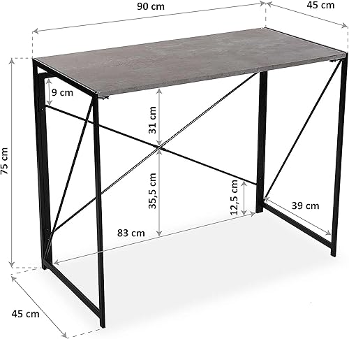 Versa Jack Bureau Informatique Bureau Sécretaire Poste de Travail Table d'étude pour Ordinateur Gaming, Pliable, Dimensions (H x l x L) 74 x 45 x 90 cm, Bois et métal, Couleur: Marron