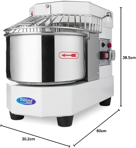 Pétrin à spirale 8 L - 4,5 Kg Pâte - Blanc - Pétrin à pâte - Professionnel - Pétrin à spirale avec Cage de sécurité - 8 litres - 4,5 kilos