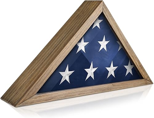 Rustic Flag Case - SOLID WOOD Military Flag Display Case for 9.5 x 5 American Veteran Burial Flag, Wall Mounted Burial Flag Frame, Flag Shadow Box to display folded flag. (Weathered Wood)