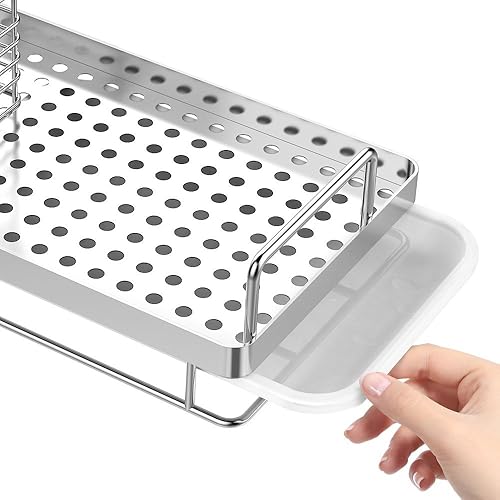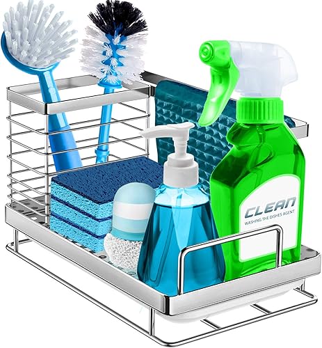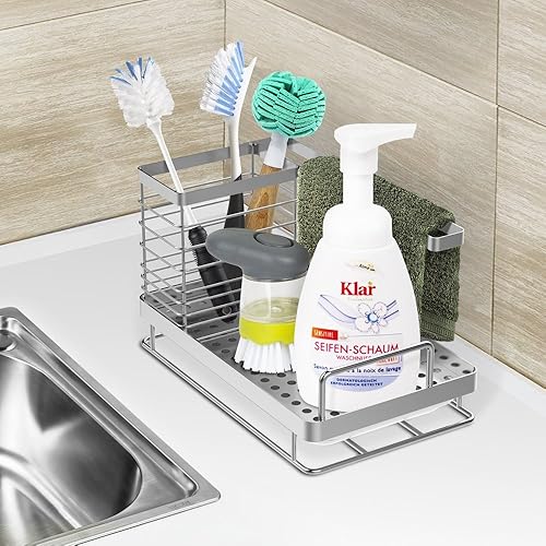 OriwarE Panier de Rangement pour évier - Porte-éponge - Porte-ustensiles avec égouttoir - en Acier Inoxydable - 25 x 15 x 15 cm