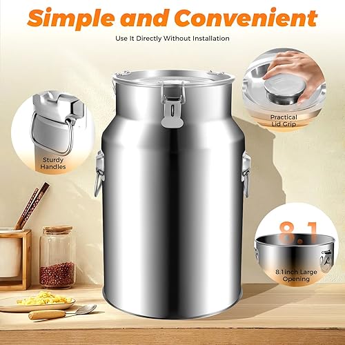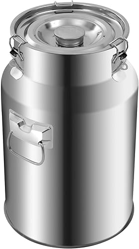 vinnyooc 18L Pot a Lait, Ronde Pichet Lait Inox, Pichet de Transport Tonneau Multifonctionnel avec Couvercle pour Cuisines Familiales Restaurants Cantines
