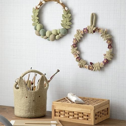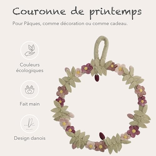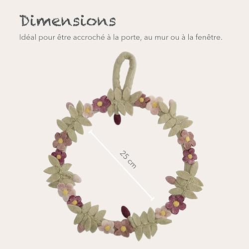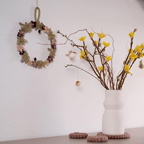 Èn Gry & SIF Couronne de Porte en Feutre - Fleurs et Fleurs - Couronne décorative aux Couleurs délicates - Toute l'année - Fabriquée à la Main - Couronne de Printemps - Diamètre : 25 cm