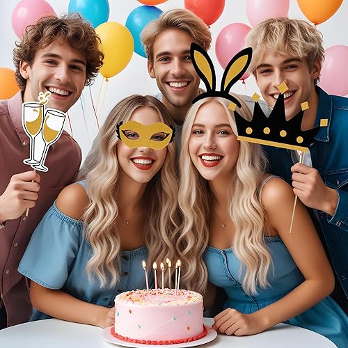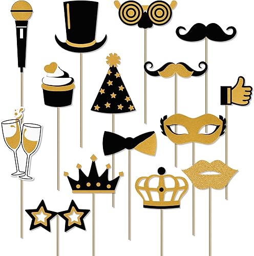 Accessoires Photobooth,24 pcs Accessoires Photobooth Mariage,Décor de Fête Noir et Or, Accessoire Photobooth,Photobooth Anniversaire Décorations Noël Nouvel,Photobooth Mariage Fêtes d'anniversaires