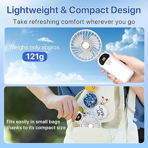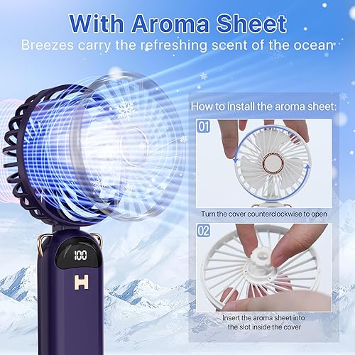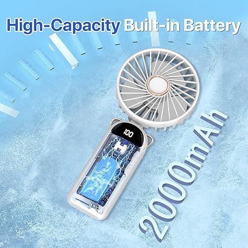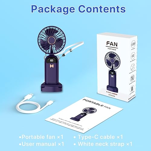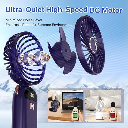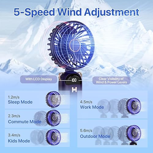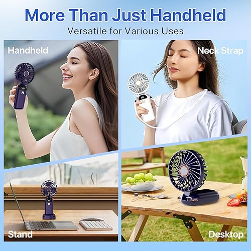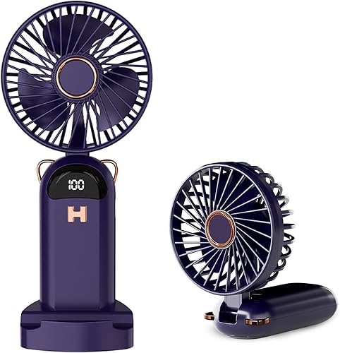 LUTW Mini Ventilateur Portable, Petit Ventilateur de Poche 5 Viteses Avec Base, Ventilateur Rechargeable USB de Poche pour voyage, bureau, maison, Bleu foncé