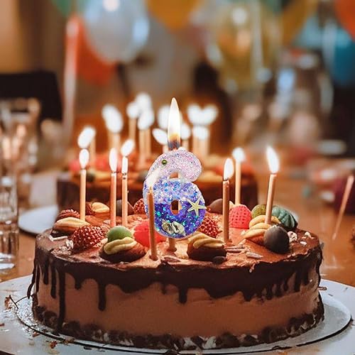 Vordpe Bougies d'anniversaire chiffres 6, scintillantes pour bougies d'anniversaire, décoration de gâteau pour enfants, pour fête d'anniversaire, fête de fête, anniversaire, décoration d'anniversaire