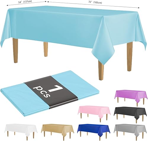 KAshack Nappe jetable en plastique - 137 x 183 cm - Nappe élastique - Imperméable - Pour extérieur, pique-nique, mariage - Nappe de jardin - Bleu clair - 137 x 183 cm