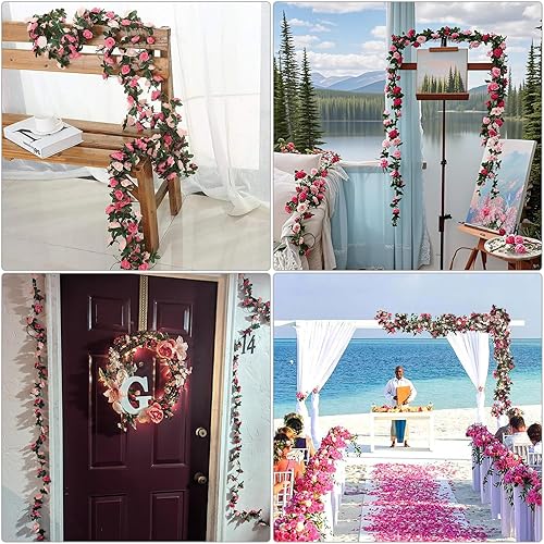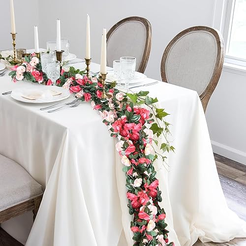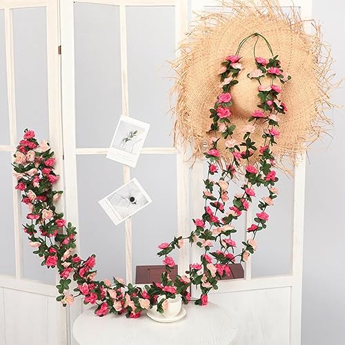 Fzyisw Lot de 2 guirlandes de fleurs artificielles de 2,4 m de pivoines artificielles - Guirlande de fleurs artificielles comme de vraies plantes suspendues - Pour mariage, jardin, décoration murale