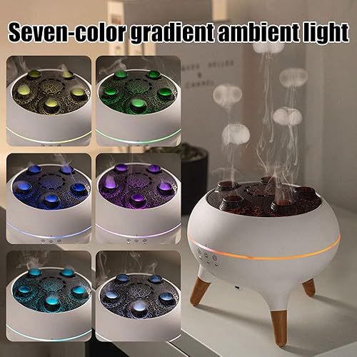 Humidificateur Volcano,Diffuseur de Flamme 250 Ml avec Brume de Méduse,Minuterie 4 H/8 H,2 Modes de Brume avec Lumières LED Colorées et Télécommande pour Chambre et Bureau