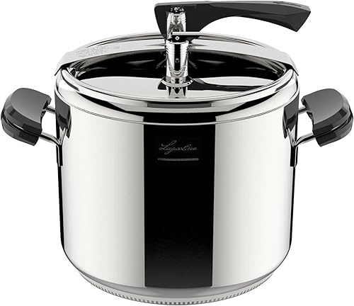 Lagostina Marmite à pression La Classica Lagofusion, autocuiseur Ø 26 cm, capacité 12 L, avec panier, recette et écodose, poignées en Bakélite, valve à poids et fond Lagofusion