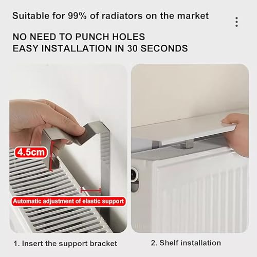UVCMDUI Cache-Radiateur Anti-Fumée et Anti-Poussière, étagères de Radiateur de 25 à 170 cm, Largeur 15 cm Tablette Radiateur sans Percer en Alliage D'Aluminium, Poids de Roulement 28kg,50cm
