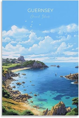 GQVCJSW Poster de voyage de Guernesey, îles Anglo-Normandes sur toile - Décoration murale pour salon, chambre à coucher - 40 x 60 cm
