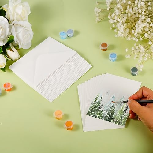 100 Feuilles de Cartes Aquarelle Vierges avec Enveloppes, Cartes 10 x 15,2cm Enveloppes Adhésives Lourdes Activées par l'Humidité 300 g/m² pour Invitations à Peindre Fournitures Artistiques