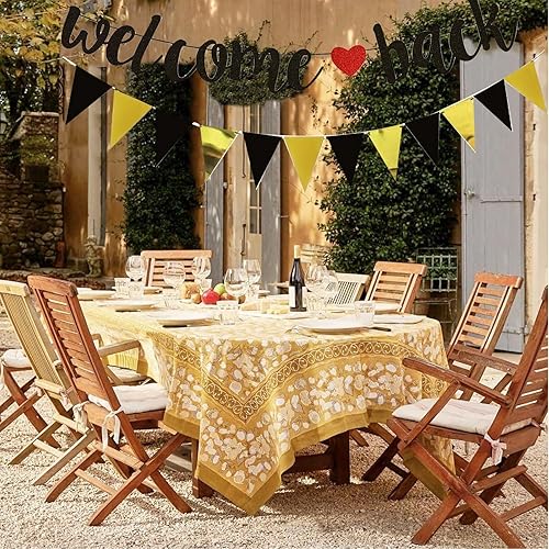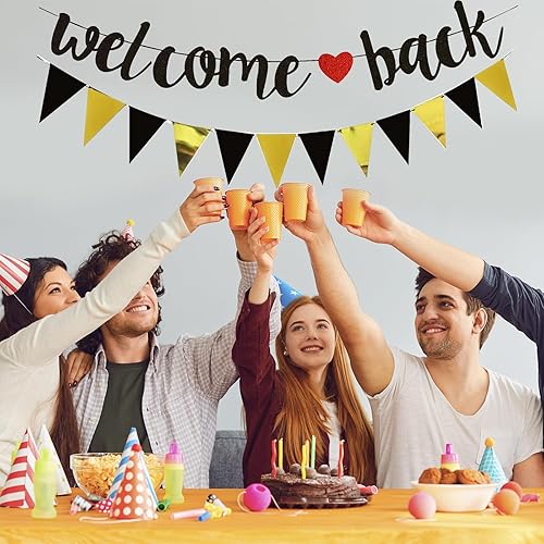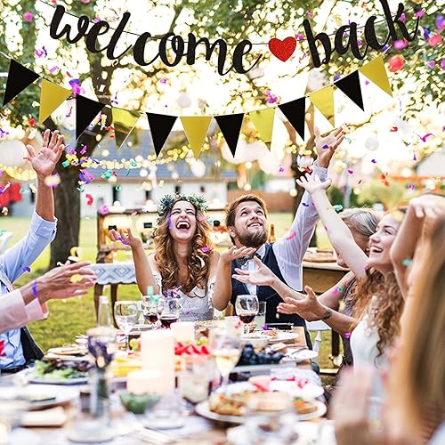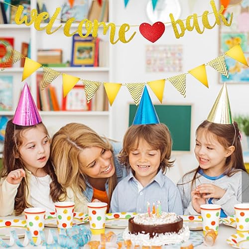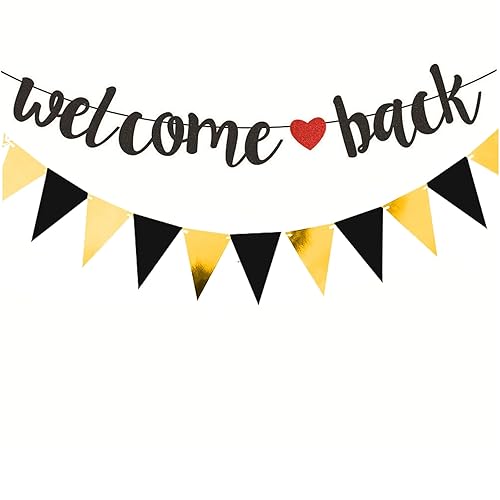 Bannière de bienvenue noire à paillettes avec fanion, guirlande de retour en papier, décoration de bienvenue pour la rentrée des classes