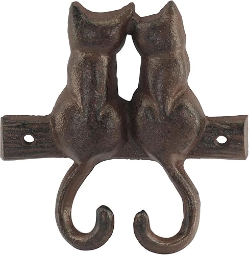 happyDko Patère Deux chats de dos en fonte, 2 Crochets polyvalents, Longueur 12 cm