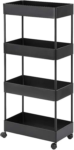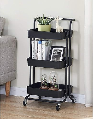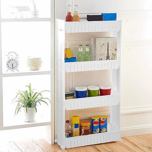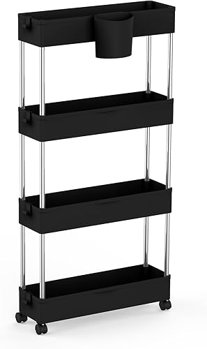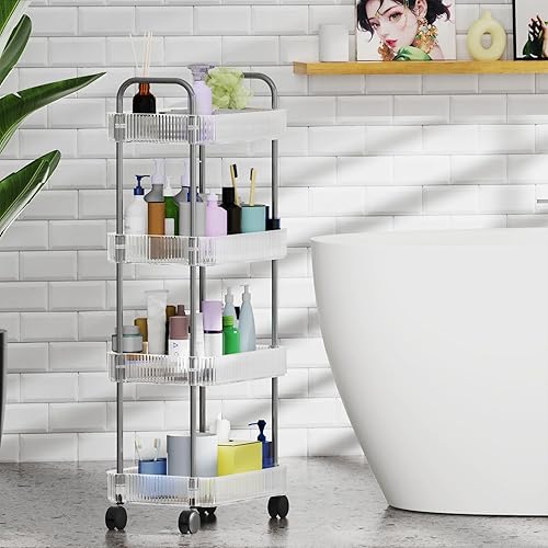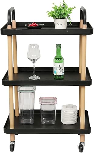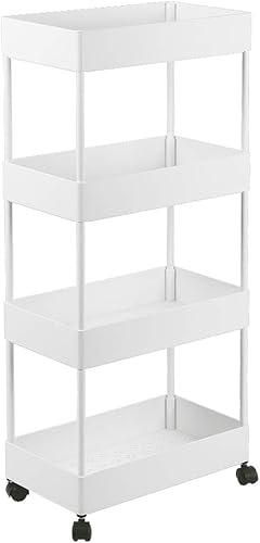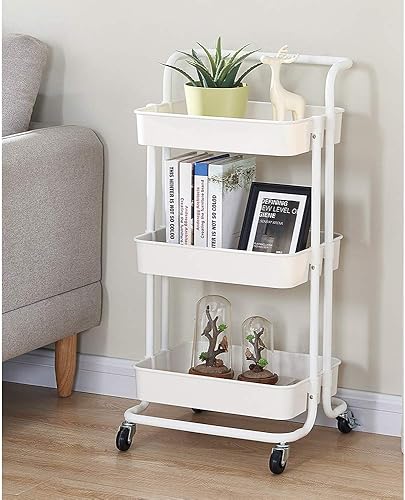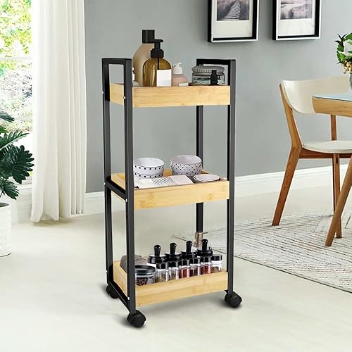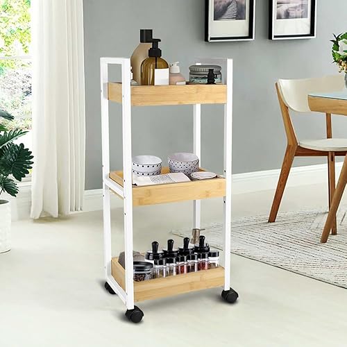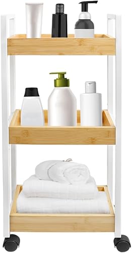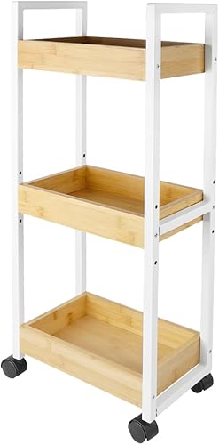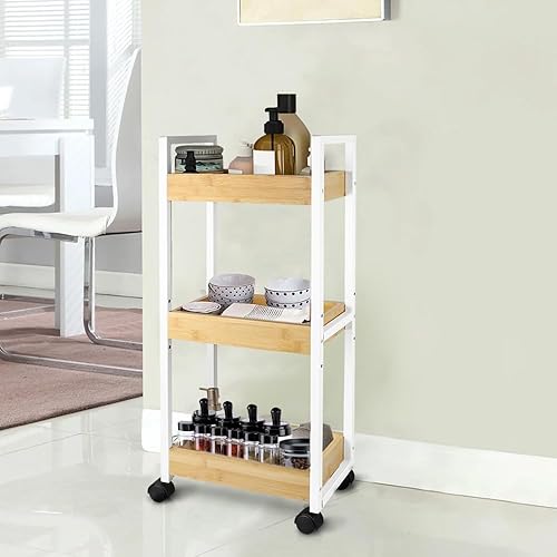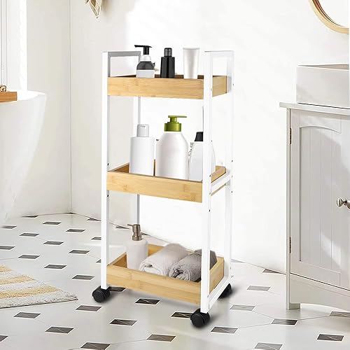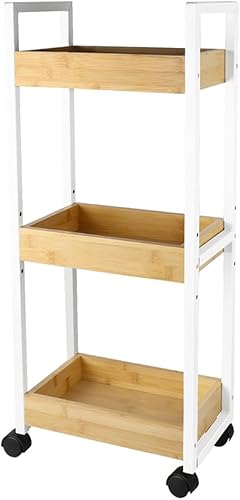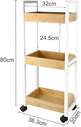 LANTUS Étagère Mince de Salle de Bains, Gain de Place, Bambou, Chariot de Rangement à 3 Niveaux sur roulettes,Étagère Debout 3 paniers dim. 30L x 20l x 80H cm-Blanc