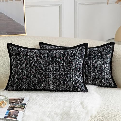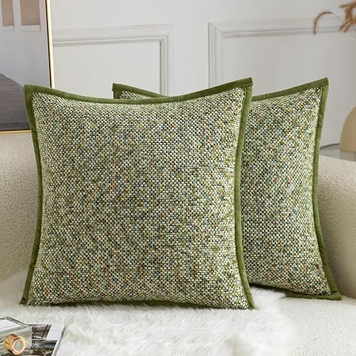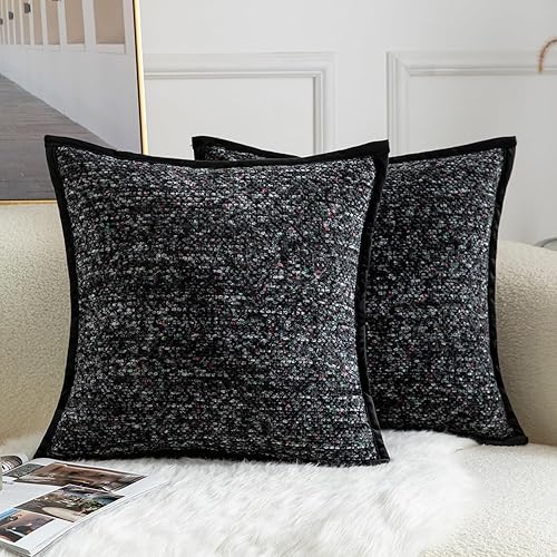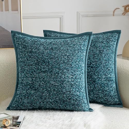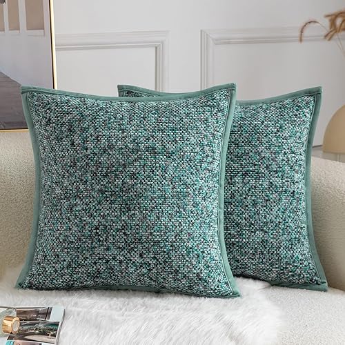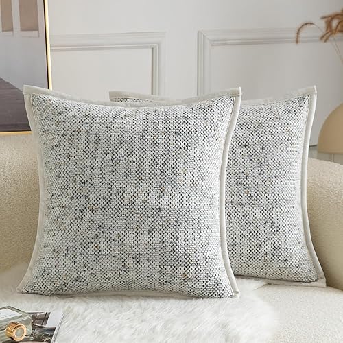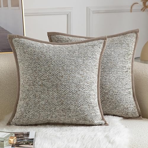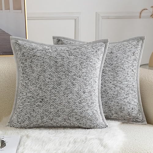 YAERTUN Lot de 2 housses de coussin décoratives carrées en tissu chenille teint sur nœuds - Confortables et doux pour canapé, chambre à coucher, salon, 65 x 65 cm, gris clair