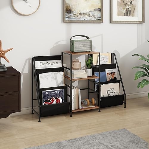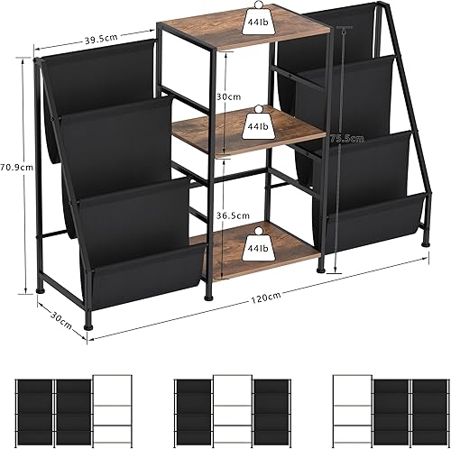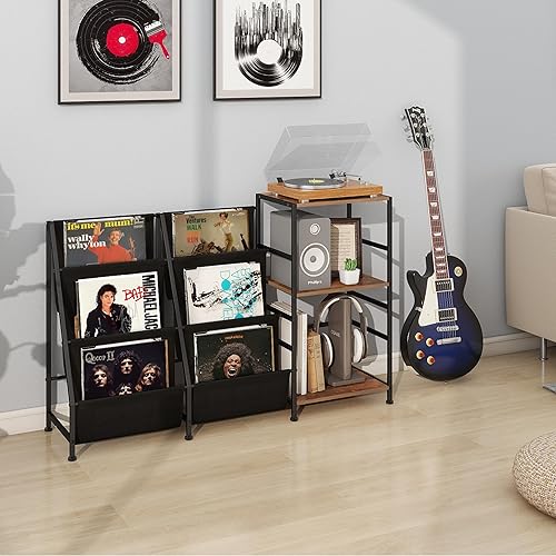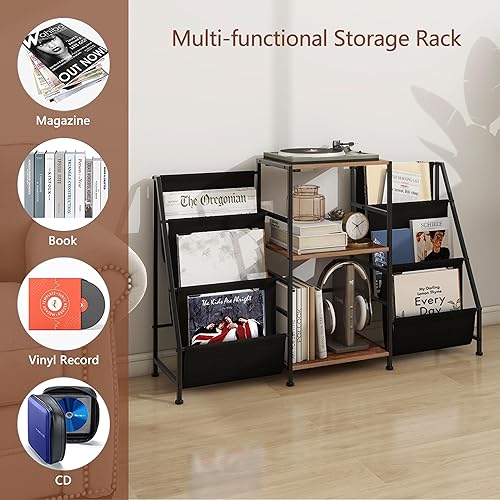 VEDECASA Bibliothèque Table d'appoint avec étagère à 3 étages en vinyle Table d'appoint pour le salon Support de disques avec lecteur vinyle pour jusqu'à 200 albums