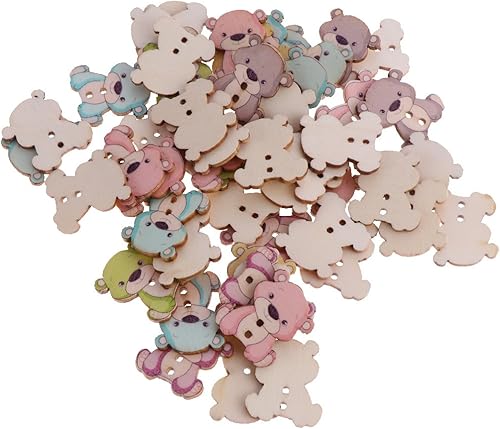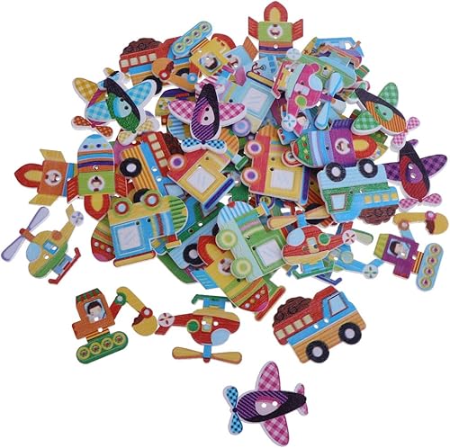 Sharplace 50 Pcs Bouton en Bois Forme de Dessin, Transport Colore à Coudre Fantaisie pour Bricolage, Chaussure DIY Décoration - Transport Mixte