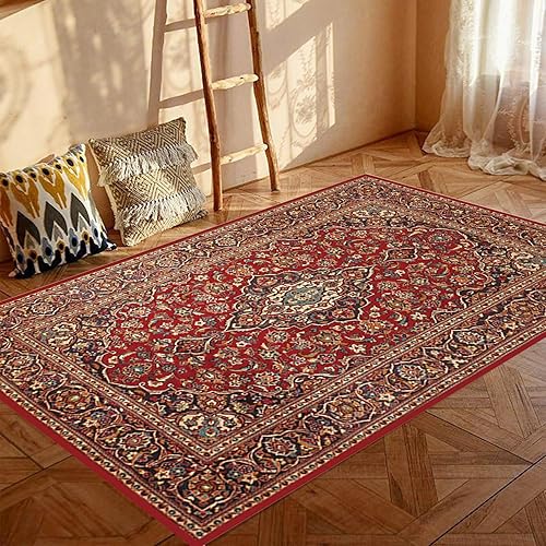 Yaaxinb Tapis de décoration,Design Traditionnel Oriental Vintage Floral Rouge Multicolore,Red,90 x 150 cm,Tapis de Salon Chambre Salle à Manger Cuisine Tapis Poil Ras Doux,
