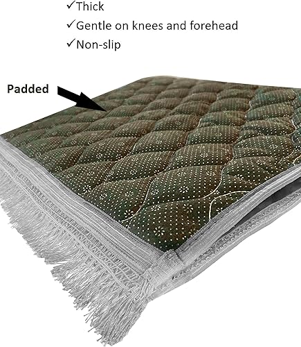 Tapis de Prière Musulman Rembourré Très Épais pour Homme et Femme - Avec Perles de Prière Islamiques pour l'Aïd, Voyage, Ramadan - Doux et Luxueux (Gris)