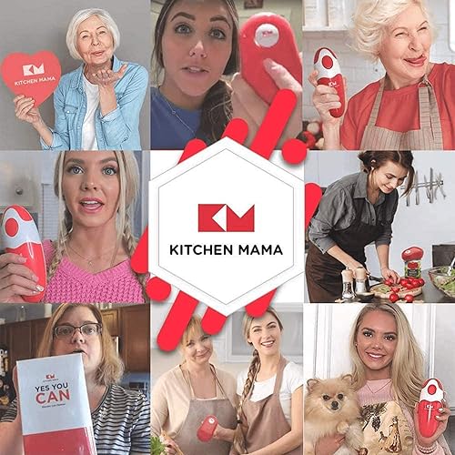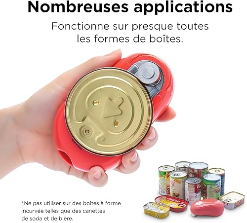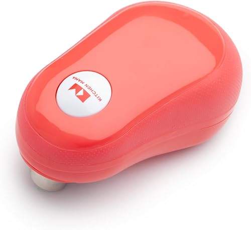 Ouvre-boîte One Touch Kitchen Mama : ouvre-boîte par simple pression sur un bouton. Arrêt automatique quand la tâche est terminée, ergonomique, bord lisse, sans danger pour les aliments (Rouge)