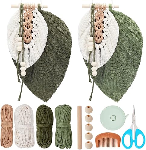FREEBLOSS Set Macramé Feuille Kit Feuille Macramé Kit de Suspension Murale Macramé Feuille Boho Macramé Feuille Kits de Macramé pour Débutants Tapisserie de Feuilles de Macramé