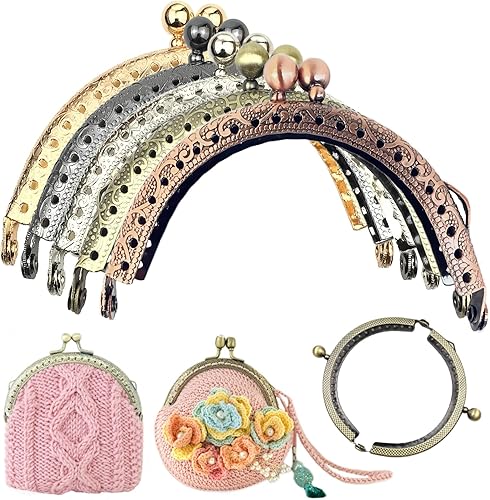 Kiss Fermoir Serrure,5 Pcs Fermoir Porte Monnaie Arc En Métal Cadre Baiser Fermoir Serrure Semi-Circulaire Sac À Main Sac Cadre Fermoir pour Les Sacs à Main et Les Bourse de Bricolage8.5cm(5 Couleurs)