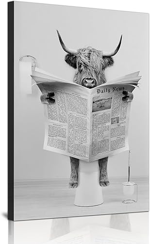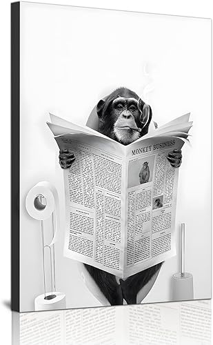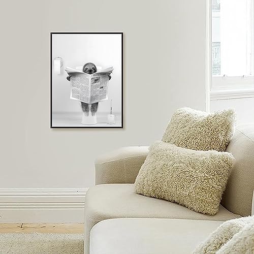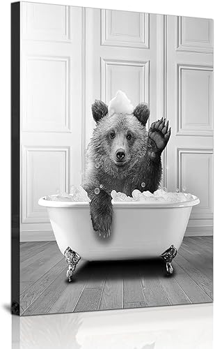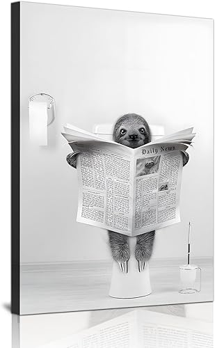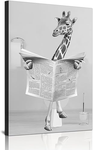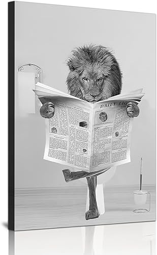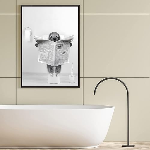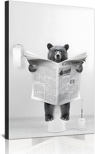 PYNVDD Mignon journal animal art mural noir et blanc toile imprimée cabine salle de bain décoration baignoire image murale sans cadre (1 pièce-30 x 40 cm)